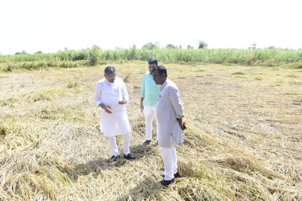 મંત્રીશ્રી નરેશભાઈ પટેલ અને મંત્રીશ્રી ડો. જયરામભાઈ ગામીતે ટોકરવા ગામે નુકસાનગ્રસ્ત પાકની સ્થિતિનું નિરીક્ષણ કરી ખેડૂતો સાથે સંવાદ સાધ્યો