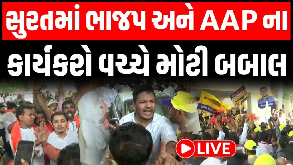 સુરત શહેરમાં ચૂંટણી પૂર્વે રાજકીય ગરમાવો ચરમસીમાએ પહોંચી ગયો છે. ગોપાલ ઇટાલિયા દ્વારા જ્યાં ભવ્ય સભા યોજાઈ હતી, એ જ સ્થળે મુખ્યમંત્રી ભુપેન્દ્ર પટેલ દ્વારા શક્તિ પ્રદર્શન કરવામાં આવતા રાજકીય માહોલ વધુ તીવ્ર બન્યો છે. આમ આદમી પાર્ટી અને ભાજપ વચ્ચે સીધી ટક્કર સ્પષ્ટ દેખાઈ રહી છે.